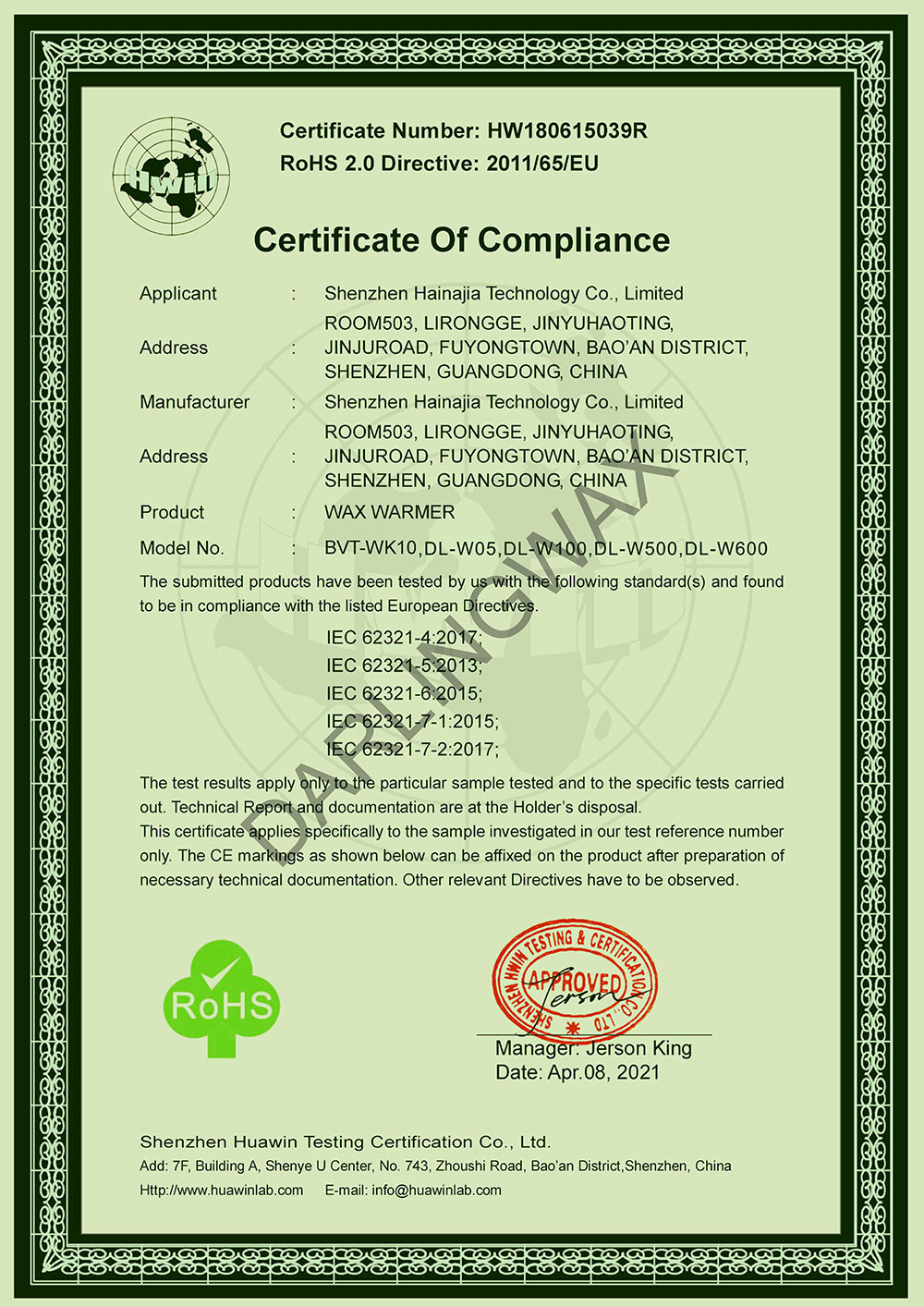- Order Confirmation: our sales will help you confirm your waxing requirement, and then give you a quotation according to your requirements.